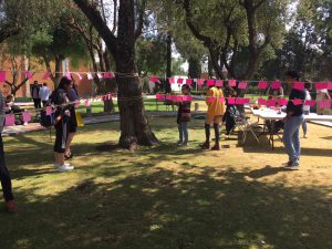 En el marco de la celebración del Día Internacional de la Mujer, un grupo de estudiantes de la licenciatura en Historia del Arte realizó una activación inspirada en la obra “El Tendedero” de Mónica Meyer.